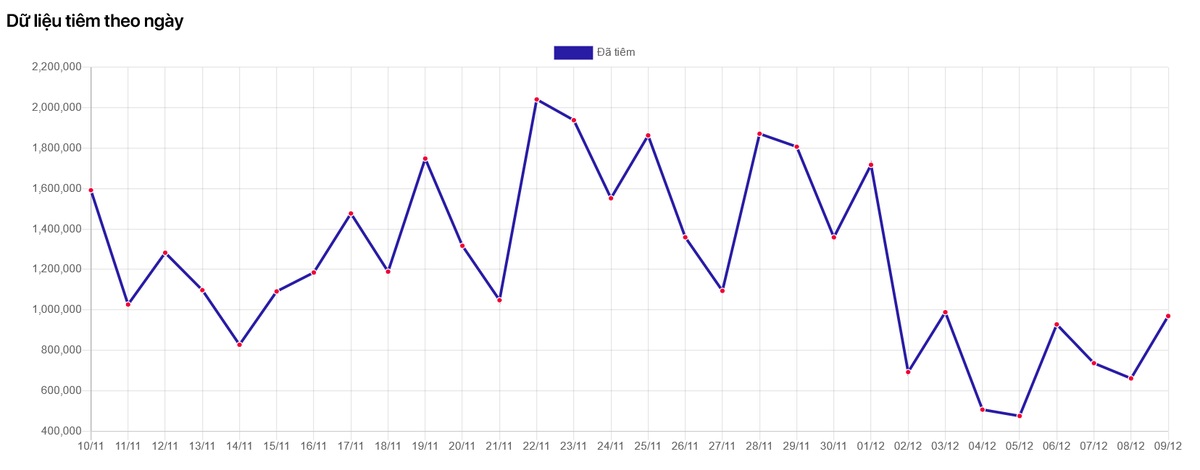 Trong một tháng qua, Việt Nam tiêm trung bình khoảng một triệu mũi/ngày, có lúc vượt mức 2 triệu mũi/ngày. Đồ họa: Cổng thông tin tiêm chủng Covid-19.