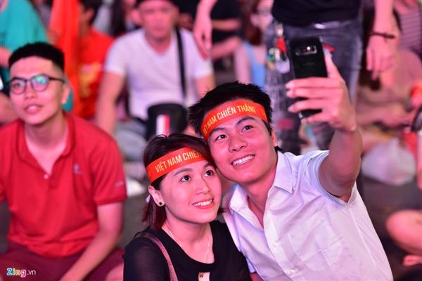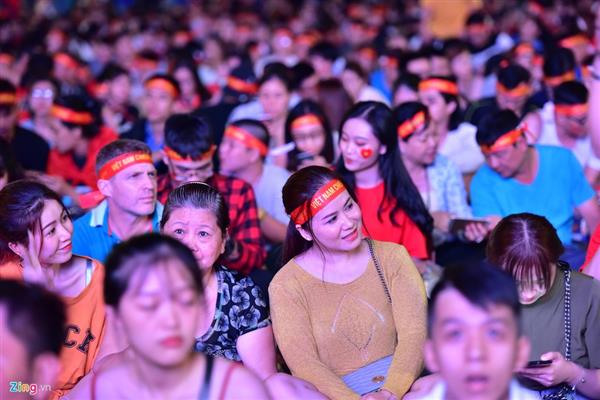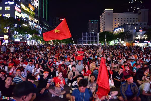 Tại phố đi bộ Nguyễn Huệ (TP.HCM), hàng nghìn người tập trung về đây háo hức chuẩn bị xem trận đấu trước 1 giờ.