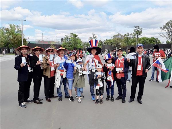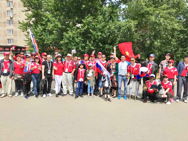 Trong ngày khai mạc giải bóng đá lớn nhất hành tinh trên sân vận động Luzhniki, thủ đô Mátxcơva, LB Nga hôm 14/6/2018, một lần nữa người Việt tại Nga có cơ hội thể hiện tình yêu với môn thể thao vua cũng như tình cảm dành cho nước Nga vĩ đại.