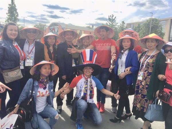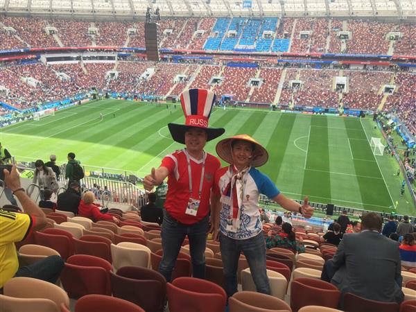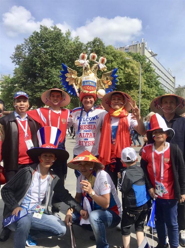 Dưới đây là những hình ảnh BBT Báo Nga nhận được từ một nhóm những người Việt tại Nga yêu bóng đá, yêu mến nước Nga. Qua đây có thể phản ánh một phần nào sự sôi động và bầu không khí bóng đá trên toàn nước Nga. Giữa hàng chục nghìn CĐV đến sân vận động Luzhniki trong ngày khai mạc, hình ảnh những lá cờ Việt Nam đã không ít lần xuất hiện trong ống kính của các phóng viên nước ngoài. Một trong những hình ảnh đẹp khác có thể bắt gặp chính là các nhóm CĐV Việt Nam với những chiếc nón được đem từ quê nhà sang Nga. Xin gửi lời cảm ơn đến những người Việt Nam đã có mặt trên sân vận động, mọi người đã thể hiện tình yêu nước Nga, tình hữu nghị Việt-Nga theo cách riêng rất độc đáo.