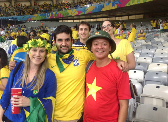 CĐV Văn Trần Hoàn với biệt danh Hoàn "pháo" có mặt tại Brazil từ ngày 1/7 để xem các trận đấu tại World Cup. Trần Hoàn là CĐV quá nổi tiếng, khi anh từng nhiều lần đi xem các trận tại World Cup những năm gần đây.