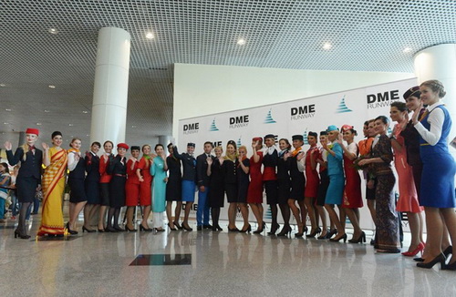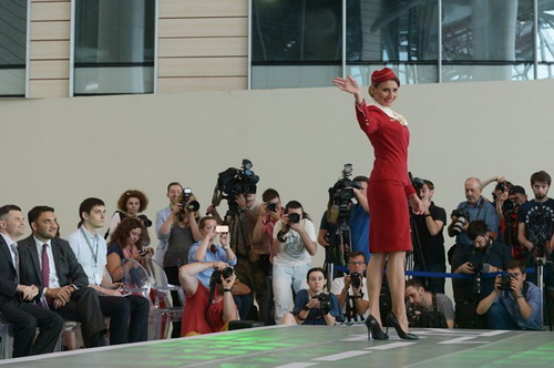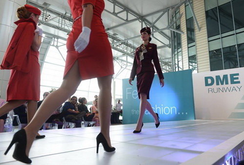 Các "chân dài" của hơn 30 hãng hàng không thế giới đã tham gia trình diễn thời trang ngay tại sân bay Domodedovo ở Moscow, Nga.