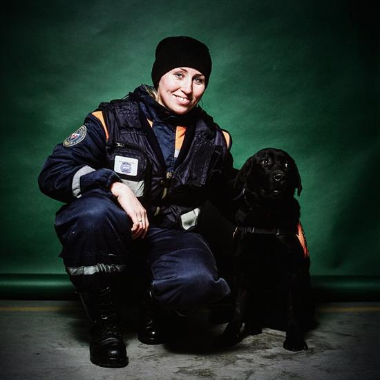 Svetlana Sonina, 30 tuổi, là chuyên viên huấn luyện chó cứu hộ, cô chó Gadi (Nữ hoàng bóng đêm) đã cùng chị thực hiện nhiều nhiệm vụ tìm kiếm thuốc nổ và những người bị mắc kẹt trong thảm họa. (Ảnh: Stoyan Vassev)