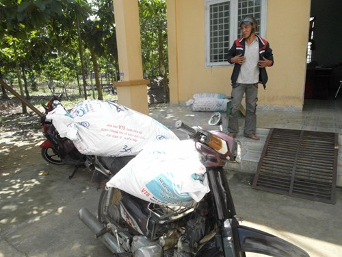 Toàn bộ số đỉa sấy khô được Việt vận chuyển bằng xe máy - Ảnh: Giang Phương