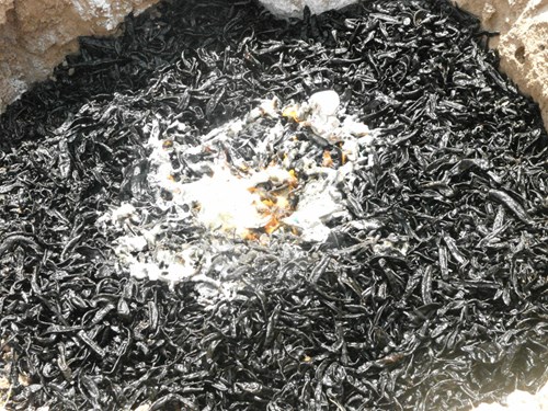 Các lực lượng chức năng tiêu hành tiêu hủy 72 kg đỉa sấy khô - Ảnh: Giang Phương