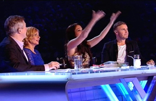 Hai giám khảo Gary Barlow cùng Louis Walsh đã phải hướng dẫn anh chàng phát âm đúng tên nữ giám khảo này.
