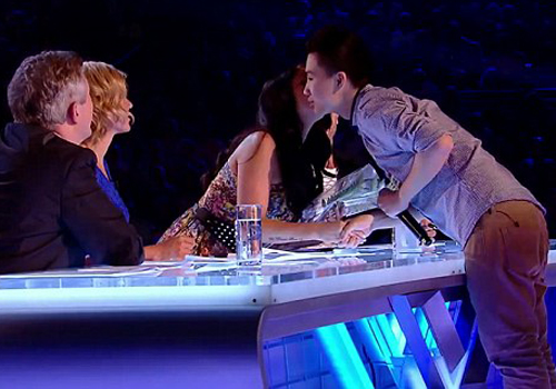 Giám khảo Tulisa hôn Jason Viet Tien - Ảnh chụp màn hình