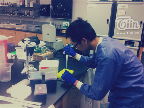 Hùng Lâm tại phòng thí nghiệm của trường