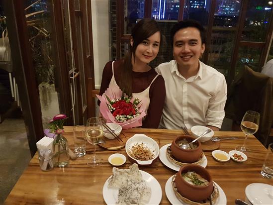 “Chúng tôi hẹn sẽ cùng ăn tối trong ngày Valentine. Khoa đã làm tôi vô cùng bất ngờ khi tặng hoa hồng và nói rằng anh yêu tôi, hãy làm bạn gái của anh ấy. Tôi khá bối rối và không biết phải trả lời như thế nào. Lúc đó trái tim tôi mách bảo hãy đồng ý đi, và tôi đã làm theo lời nó”, Sasha cười hạnh phúc khi kể lại.