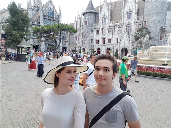Cặp đôi chụp ảnh tại khu du lịch Bà Nà