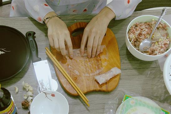 Lần đầu cuốn chả giò nhưng Sasha làm rất khéo