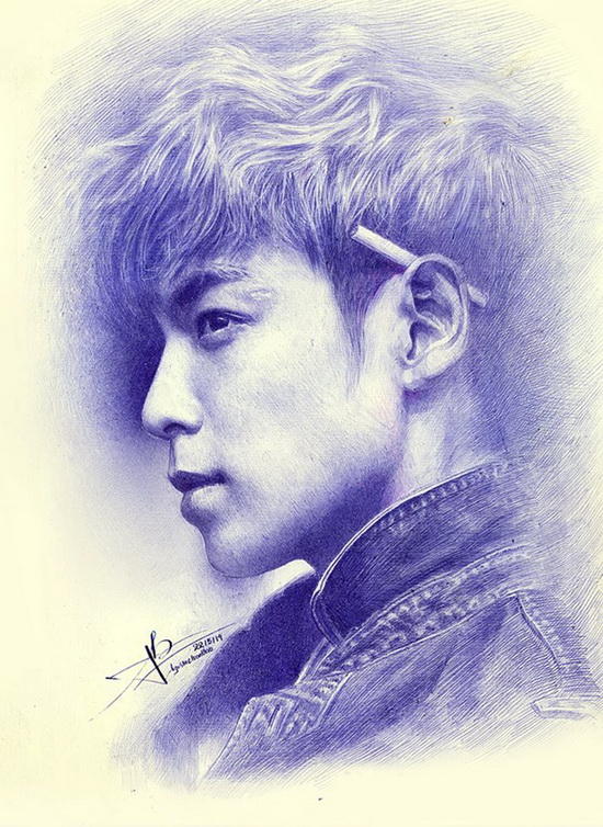 Bức tranh vẽ ca sĩ  T.O.P (ban nhạc Big Bang) này Tuấn Bảo mất 30 giờ để hoàn thành. Khi vẽ chân dung, phần tạo hứng thú nhất cho Bảo đó là đôi mắt. Chàng trai chia sẻ: “Mắt là cửa sổ tâm hồn vì vậy nó quyết định được thần thái, hồn của bức tranh mình vẽ”.