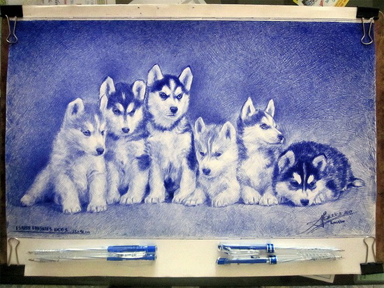 Ngoài tranh vẽ chân dung, Tuấn Bảo thử nghiệm khi vẽ động vật bằng bút bi.