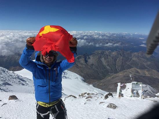 Hoàng Lê Giang chinh phục thành công đỉnh núi Elbrus ở Nga đúng ngày Quốc khánh 2/9. Ảnh: NVCC.