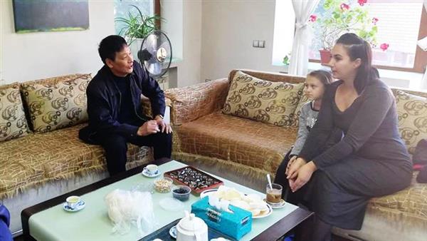 Cô Anna Poyarkova và con gái gặp Tùy viên Quốc phòng Việt Nam ở Ukraine. Ảnh: Nguyễn Anh Quân