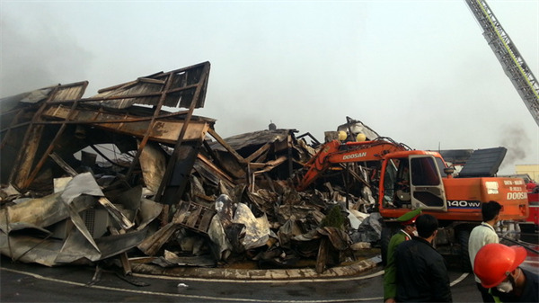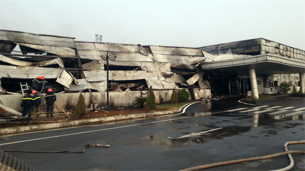 Quang cảnh tan hoang của nhà xưởng sau đám cháy