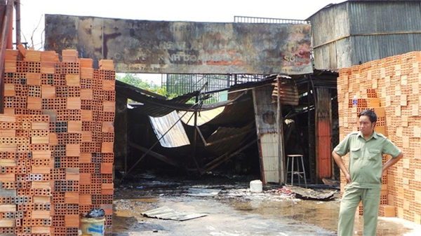 Theo các nhân chứng, thời điểm trên, chiếc xe bồn đang đậu bất ngờ bốc cháy, khói đen bao trùm cả khu vực. Người dân sợ xe bồn phát nổ nên nhanh chóng di tản ra khỏi nhà. Trong ảnh: Cửa hàng vật liệu xây dựng bên cạnh bị ngọn lửa lan sang cháy rụi.