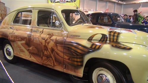 Tại triển lãm, bạn còn thấy chiếc Pobeda màu sữa với các biểu tượng kỷ niệm chiến thắng Chiến tranh vệ quốc vĩ đại 1945. Chiếc xe này năm 2015, kỷ niệm 70 chiến thắng phát xít Đức, đã thực hiện chuyến hành trình 6 ngày từ Moskva và đến Berlin đúng ngày kỷ niệm Chiến thắng 9/5.