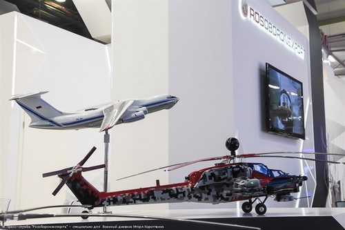 Mô hình trực thăng tấn công đa năng Mi-28NE và máy bay vận tải quân sự mới Il-76MD.