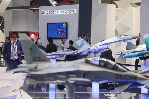 Giống như ở các triển lãm quân sự khác, gian hàng vũ khí Nga không thể thiếu những mô hình giới thiệu về các máy bay chiến đấu đa năng thế hệ 4++ Su-35S, MiG-35, máy bay huấn luyện Yak-130 và cả mô hình máy bay chiến đấu tàng hình T-50.