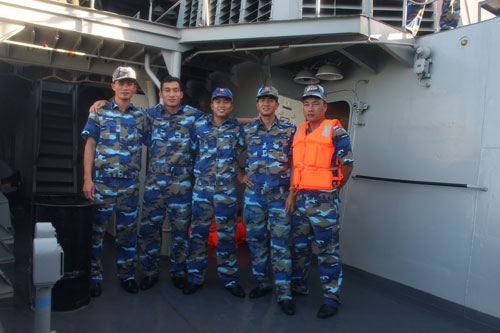 Các thủy thủ Việt Nam phấn khởi khi hoàn thành nhiệm vụ sau một hành trình đầy sóng gió