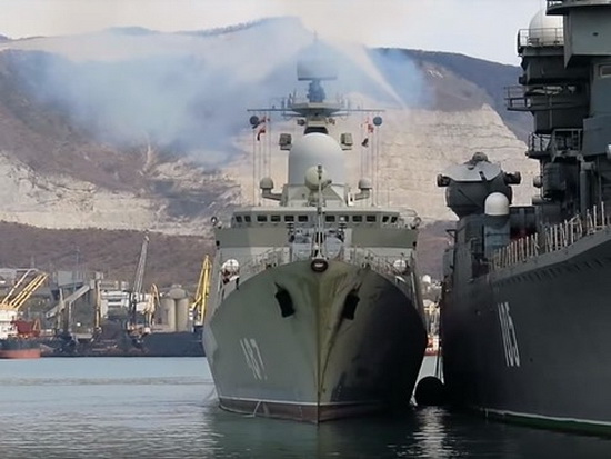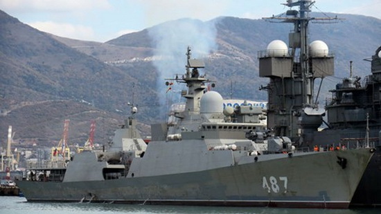 Chiến hạm Gepard 3.9 số hiệu tạm 487 chuẩn bị rời khỏi vị trí (Ảnh: Spunik)