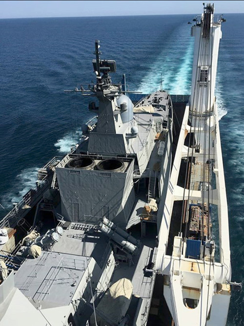 Chiến hạm Gepard 3.9 thứ tư của Việt Nam trên khoang tàu Rolldock Star ngày 30.12.2017 khi đang di chuyển trên vùng biển gần Cape Town, Nam Phi.