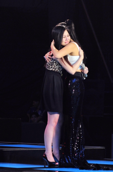 Hồ Ngọc Hà nổ phát súng khen ngợi đầu tiên: “Mọi người bấn loạn vì em. Từ xuất sắc không đủ để nói về tài năng của em. Tôi đoán được tương lai kết quả này, bởi vì khi em lựa chọn bài hát, rồi khi hát câu “Love you” em chỉ về chị Thu Minh”.