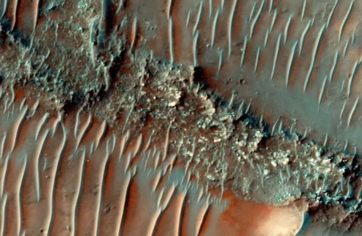 đã bị xói mòn mạnh trên Sao Hỏa. CC BY 4.0 / HiRISE Image: ESP_085386_1505 NASA/JPL/University of Arizona (cropped image)