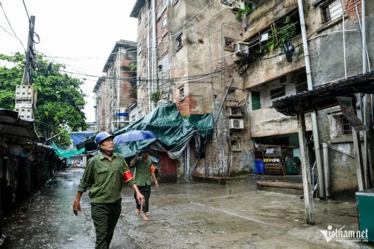 Đêm 6/9, quận Hoàng Mai (TP Hà Nội) di dời 48 hộ dân với 160 nhân khẩu ra khỏi khu tập thể cũ A7, phường Tân Mai để ứng phó với bão số 3 Yagi.