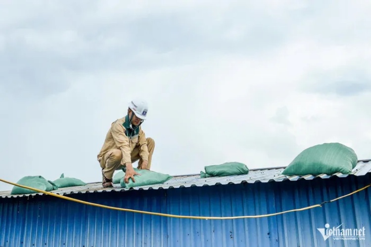 Theo ghi nhận tại vùng ven biển Kim Sơn, nhiều nhà dân dùng bao cát, bì nước để gia cố mái nhà.