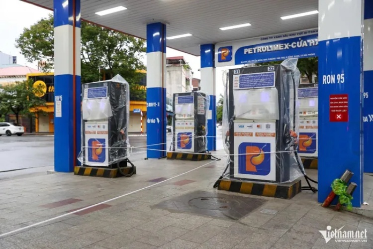Các cột bơm tại cửa hàng xăng dầu số 1 Trần Hưng Đạo (quận Hồng Bàng) được chằng buộc cẩn thận. Ảnh: Phạm Hải