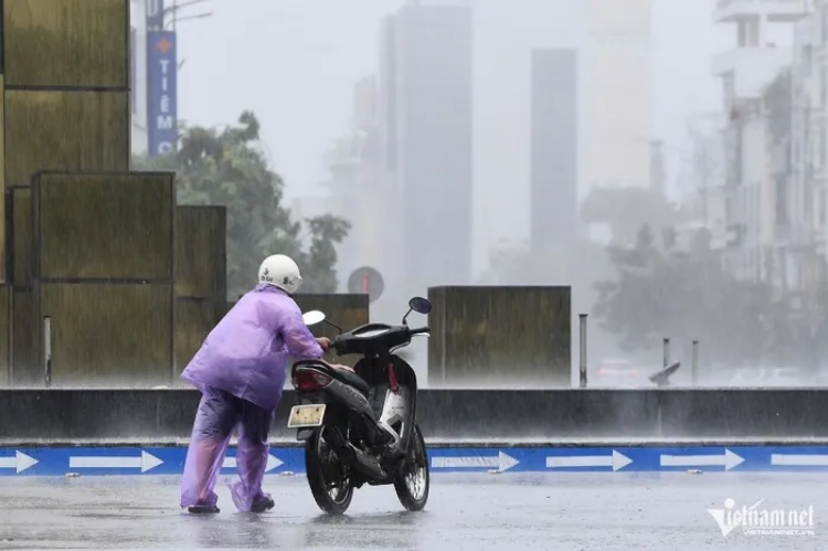 Trung tâm TP Hải Phòng bắt đầu mưa lớn và gió to.