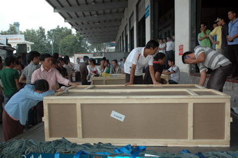 Mặc dù theo lịch trình chuyến bay mang số hiệu VN 194 sẽ về đến Hà Nội vào lúc 7 giờ 45 phút Chủ Nhật, ngày 23/9 nhưng phải đến 9 giờ 23 phút, tro của nạn nhân đầu tiên mới được mang ra Nhà ga hàng hóa.