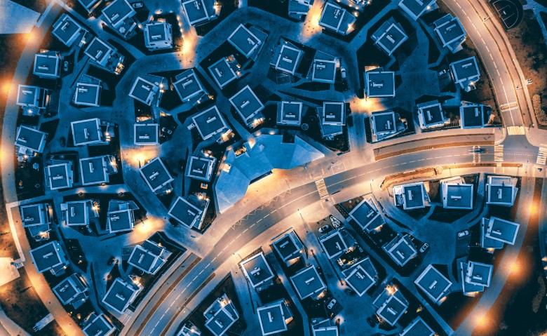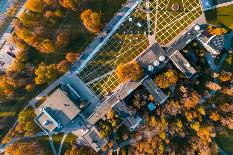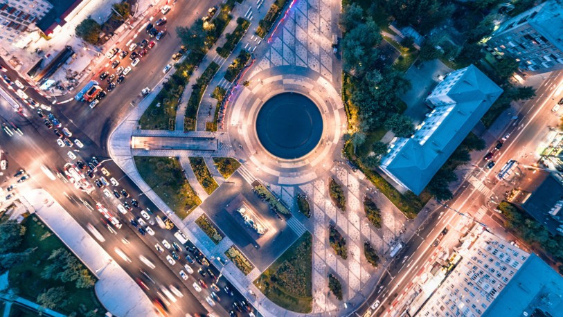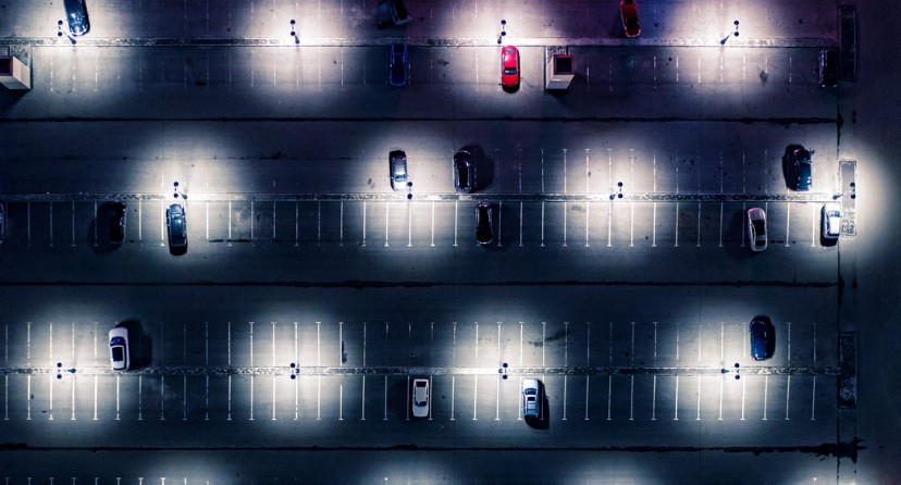 Một bãi đỗ ô tô nhìn từ trên cao.