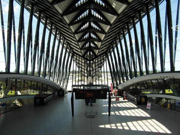 Tòa nhà của sân bay này được xem là một trong những biểu tượng nguyên bản nhất trên thế giới. Bước vào bên trong, du khách dễ dàng cảm nhận sự "bất đối xứng" và độc đáo của lối kiến trúc, cho ta cảm giác như mọi thứ như một dòng chảy nhẹ chứ không hề khô khan, cứng cáp.
