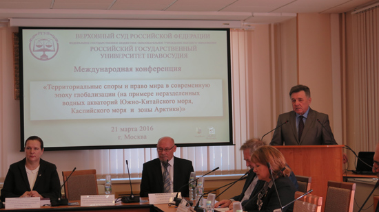 Ngày 21/3, tại Moskva, LB Nga, ba đơn vị có uy tín về luật là Học viện tư pháp trực thuộc Tòa án tối cao LB Nga, Khoa Luật Hiến pháp và Luật Quốc tế của trường Tổng hợp Tài chính trực thuộc chính phủ LB Nga và Ban Luật học của Viện thông tin khoa học xã hội thuộc Viện hàn lâm khoa học Nga tổ chức cuộc hội thảo mang tên “Tranh chấp lãnh thổ và luật hòa bình trong thời đại toàn cầu hóa hiện nay”.