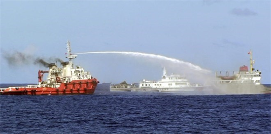 Tàu Trung Quốc tấn công tàu Việt Nam bằng vòi rồng. (Nguồn: Cảnh sát biển Việt Nam)