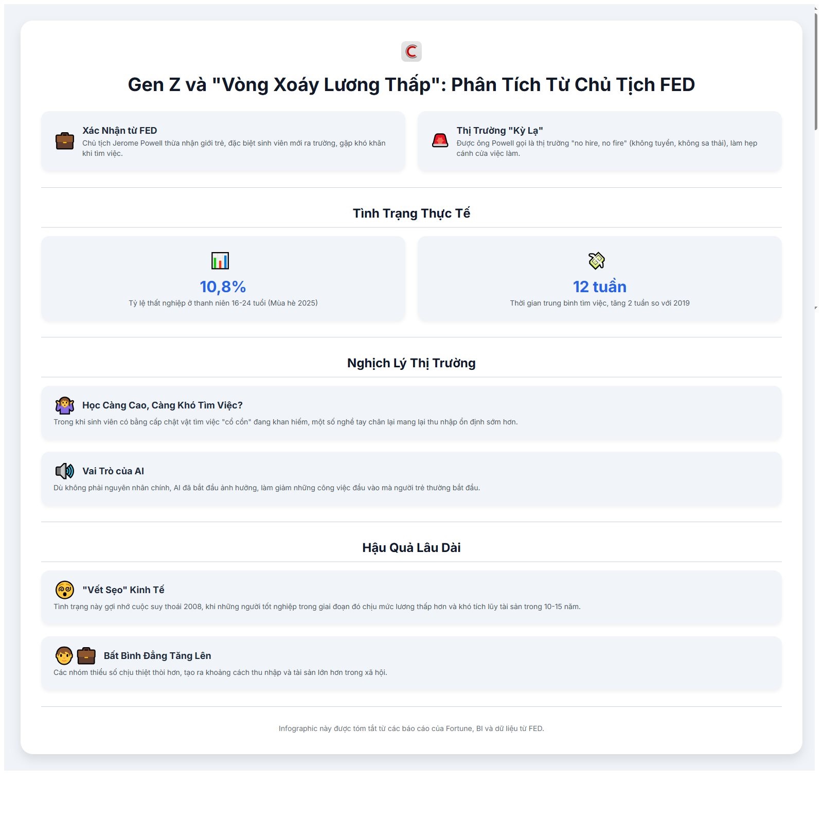 Lời phát biểu của Chủ tịch Powell rằng "những người trẻ tuổi, đặc biệt là sinh viên mới ra trường, đang gặp khó khăn trong việc tìm việc" đã không còn là một tin tức mới lạ, mà là một lời xác nhận đầy trọng lượng từ cấp cao nhất của nền kinh tế Mỹ.