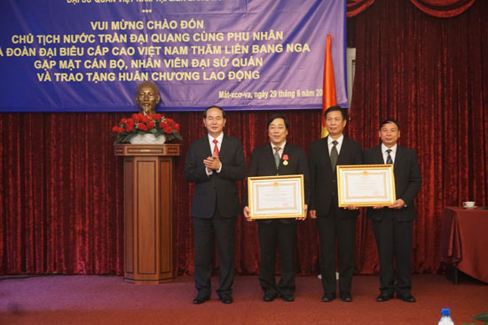CT Trần Đại Quang trao 2 Huân chương Lao động cho Đại sứ và tập thể ĐSQ VN tại LB Nga