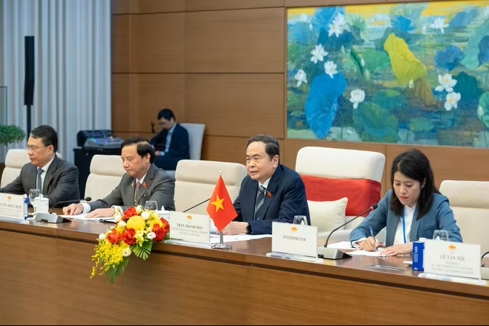Chủ tịch Quốc hội Trần Thanh Mẫn phát biểu tại cuộc tiếp.