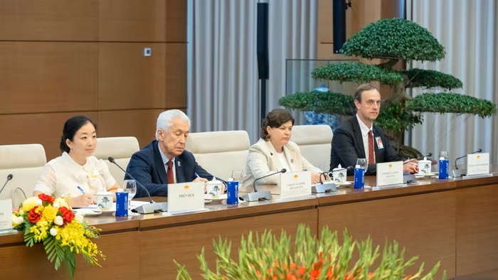 Phó Chủ tịch Quốc hội Nguyễn Khắc Định và các đại biểu Việt Nam tại cuộc tiếp.