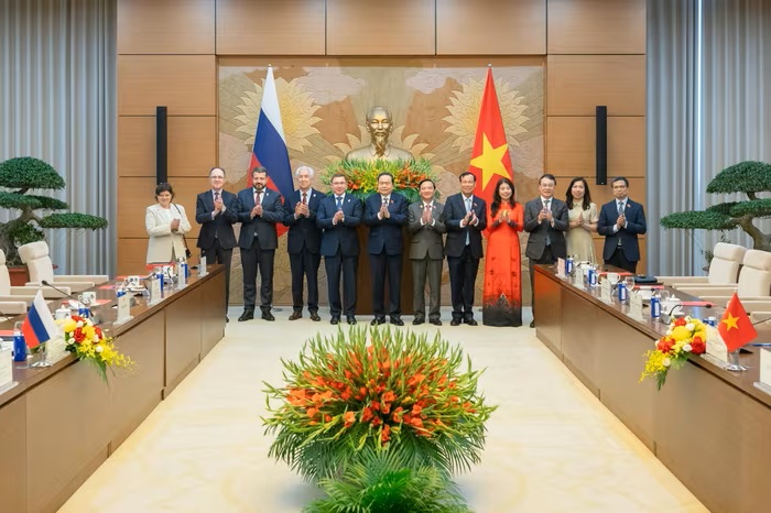 Chủ tịch Quốc hội Trần Thanh Mẫn và Bí thư Đại hội đồng Đảng Chính trị nước Nga thống nhất, Phó Chủ tịch thứ nhất Hội đồng Liên bang Nga, Quốc hội Liên bang Nga Vladimir Vladimirovich Yakushev cùng đại biểu hai nước.