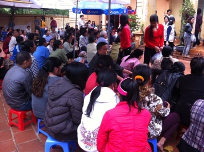 Chọn thời điểm vào giữa trưa, thời điểm ít người đến khám bệnh nhất thế nhưng trái với suy đoán của chúng tôi, trên mảnh sân rộng đó phải có đến gần trăm người ngồi la liệt để chờ vào lấy thuốc.
