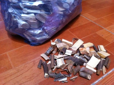 Túi thuốc của cô Tranh chỉ là cành cây chẻ nhỏ.