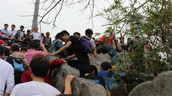 Cảnh người dân chen lấn, giẫm đạp lên nhau tại buổi phát ấn đền Trần năm 2013.