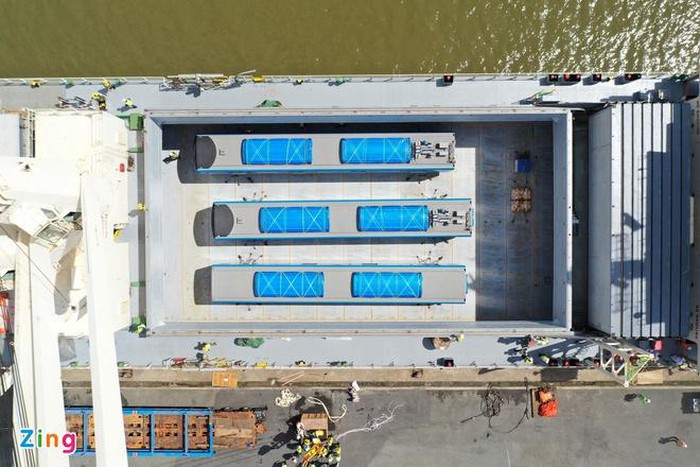 Ông Nguyễn Quốc Hưng, Phó tổng giám đốc Công ty CP Cảng Sài Gòn, cho hay công tác dỡ hàng mất khoảng 8 giờ. Để tránh xảy ra trầy xước trong quá trình xếp dỡ, có 10 chuyên gia thuộc tổng thầu Hitachi (Nhật Bản) theo sát công tác tháo dỡ cùng đội ngũ kỹ sư, công nhân cảng.