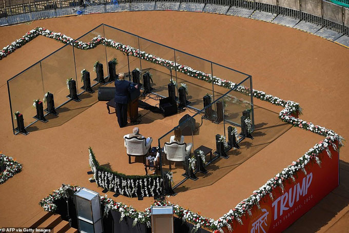 Khu vực phát biểu của hai nhà lãnh đạo tại sân vận động. Ảnh: AP.