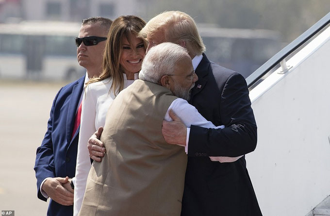 Trước đó, Thủ tướng Narendra Modi đích thân chào đón nhà lãnh đạo Mỹ và phu nhân ở sân bay. Ảnh: AP.