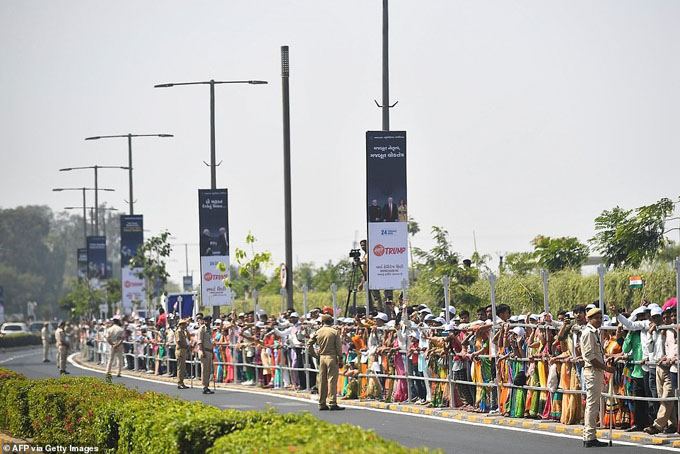 Người dân Ấn Độ xếp hàng dài ven đường chào đón Tổng thống Donald Trump và Phu nhân. Ảnh: AFP/Getty.